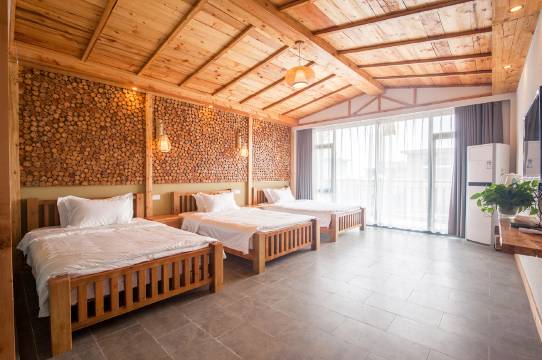 民宿距离景区乘车点很近,步行3分钟。房间很大,宽敞通透,窗边的榻榻米很舒服也很实用。老板家的菜做也很不错,量大很实惠!
