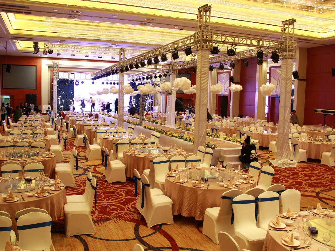 酒店拥有10个不同档次的会议室,内设进口高清LED屏供会议、宴会使用。拥有无柱高8米、面积800平方米的千秋岁多功能厅,诏园中餐厅、西餐咖啡厅、芙洛拉星光餐厅及复合宴会单间或包间。