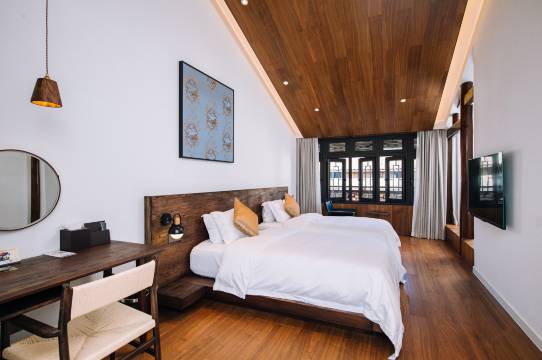 房间面积适宜,loft式房型设计,有个超大浴缸🛁,在大冷天泡个热水澡,全身舒爽!古城游客较少,适合避世