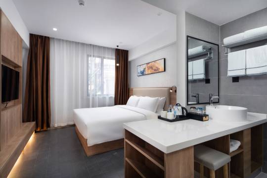 服务很贴心 房间宽敞灯光明亮 通透 空调功率很大很好用很安静 睡的很好 离地铁站很方便 交通出行便捷