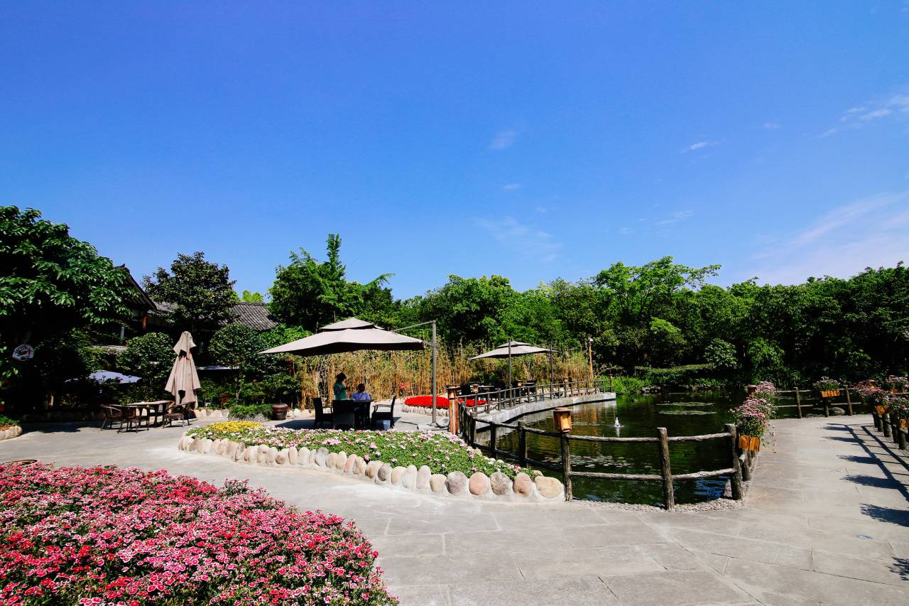 酒店庭院内满目苍翠、鸟语花香、景色宜人,环境幽静,让你远离城市喧嚣,仿佛置身于桃花深处。这里庭院叠立,一年四季,都那么的芬香四溢