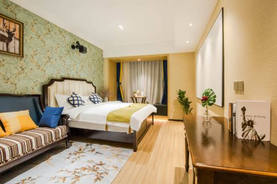 酒店产客房内设施设备齐全,配有中央空调,自带爱奇艺会员的百寸巨屏投影、全自动滚筒带烘干西门子洗衣机、西门子双层冰箱、高速wifi无线上网、智能马桶、净水系统等各种现代化智能设备,安伴智能门锁管理系统、全棉高端床品,严格的每客每日消毒制为您的出行提供安全、放心、温馨、舒适、怡人的居住环境。
