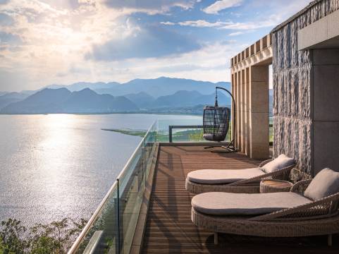 酒店坐落于静谧优美的桐庐天溪湖度假区,是桐庐一家国际奢华酒店;客房宽敞舒适;酒店客房均配备落地窗和独立阳台,可在客房内饱览四季天然美景。独立阳台面积各有不同,酒店会根据当天入住情况为您安排房间;行政总厨将结合桐庐本地食材,开发时令特色菜单。奢华的酒店设施以及专属服务为客人打造订制般的康莱德酒店体验。酒店设计理念回归自然,为客人提供健康舒适的入住体验。酒店周边古村落、著名旅游景区以及水上活动,让客人的旅程更加健康,充满活力。