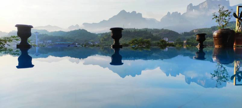女主人非常友善,她不仅从火车站接我,甚至还帮我预订了天门山的门票。而且,这家住宿离缆车入口非常近。从泳池还能看到天门山和天门洞的绝美景色。