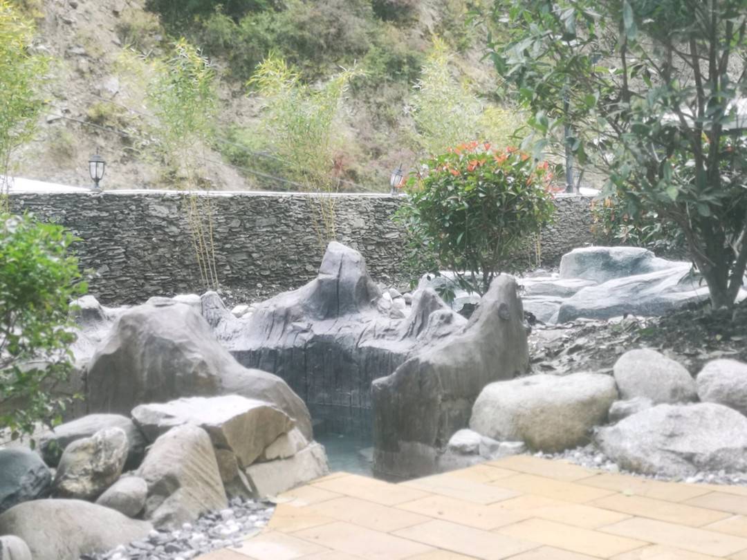 酒店占地面积1530平方米,配套有室内温泉池2个,室外温泉池3个,有实木情侣房、榻榻米大床房、榻榻米双床房、亲子房等各类客房55余间,所有客房都有足量地暖,末端循环热水,酒店装修采用天然实木、石材等自然环保材料,有停车场、早餐厅、休闲吧等配套设施设备,客房床单、被套为80*80喷气贡缎面料,床垫为独立布袋弹簧加6CM天然乳胶,并分为硬软两面。酒店位于古尔沟镇中心,并自有当地特色烧烤、高原汤锅等美食,客房一面看山,另一面看水,周边配套完善,风景优美,距毕棚沟风景区24KM,距鹧鸪山滑雪场55KM等景点。