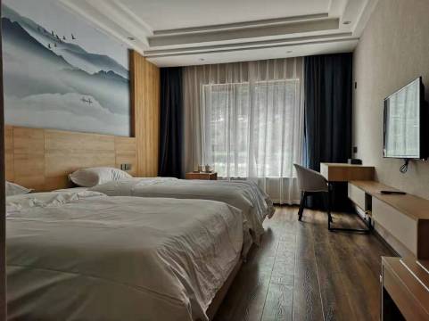 这次川西之行最让我治愈开心的一环就是入住这家酒店 因为行程比较紧凑 所以小伙伴们身体都很疲乏 加上没来得及做太多攻略 其实也在吃行上踩了不少坑 本来心情是比较郁闷的 行程最后一天来这家酒店入住 从办理入住前台的姐姐就非常热心 告诉我们的订单包含早餐 由于最近是春节后的淡季 他们可以根据我们要用餐的时间来做早饭 光是这一点我就觉得很贴心了 也告诉我们附近哪里有超市 还专门带我们去看了后面的温泉 凌晨小伙伴们都饿了 但是外面已经开始下大雪 超市也关门了 就问前台姐姐附近还有什么吃的吗 酒店的姐姐阿姨超热心的就主动提出去给我们煮面吃 我们想付费以表感谢 也被拒绝了 真的非常感动!!在酒店里能做到宾至如归 全靠你们的真诚!房间房型也很满意 房间是有地暖的 装修得很温馨 风格很像汉庭 简约大气的木质风 开窗刚好可以看到对面的山林 早上大雪未化的时候有银装素裹的美 川西一年四季都非常有特色 我想下一次与这两位姐姐见面应该是三个月后的春天 在这片伟大的美景里最让我感动的还是你们的真诚热情