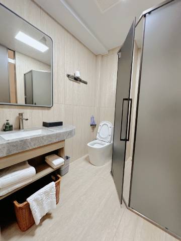 连住了三天,早点挺丰富的,补货也很及时。保洁态度超好,喝茶有点多,茶包补的也快。住宿环境中等吧,1月份,室内暖风不太行,不过好在干净卫生,卫生间也没有异味,隔音也很好,下次还会再来的