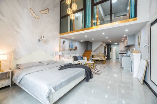 公寓是栖息地酒店管理团队旗下的设计型公寓。设计师将对禅意的理解融入到设计中,倡导人与自然之间的完美和谐。室内配以中央空调、蚕丝被、羽绒枕、乳胶沙发、100寸天猫魔屏投影仪以及完整的中式茶具以及西式红酒器具,将古典与现代进行一个融合,以禅意风格作为基调,并以舒适度作为原则考量。
