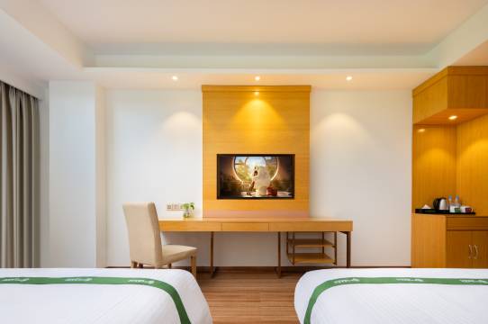 这家格林豪泰离机场非常近,出行超方便,还有贴心的接送机服务,对赶早晚班机的人来说太友好了!酒店环境干净整洁,房间布局合理,床品柔软舒适,隔音效果也不错,完全不用担心机场噪音。前台服务热情周到,办理入住很快,还主动提醒叫早和班车时间。周边吃饭购物也方便,性价比真的很高。下次飞这边还会选择这里,五星推荐!🌟
