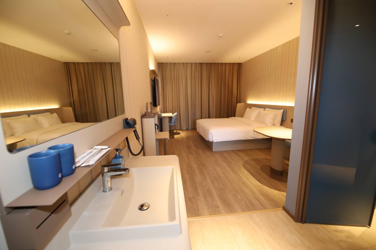 酒店是新开张的,一进门前台小姐姐和小哥哥帮我就热情的搞好入住手续。上楼电梯要刷房卡,挺安全的。房间干净整洁,冷气很足,热水出水大又够热,晚上睡觉很安静。就是隔壁关门声会听到一点,其他都不错。有什么需要的都用小机器人送到门口,好可爱的!就那个马桶冲水的声音比较夸张!早餐出品不错,挺丰富的,味道又好,大姐和叔叔的服务态度很好!住了两晚,服务员都会将房间收拾干净的!是一次不错的住店体验。