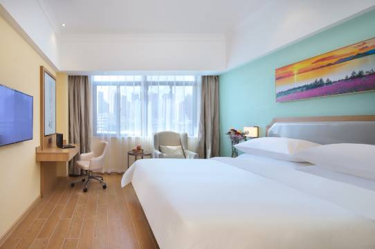 房间很温馨,打扫的干干净净的,前台的服务态度非常好,笑容很亲切,逛街很方便,对面就是银泰,来六安玩选择这家真的很不错,客房服务员也很热情,停车场也很大,很方便停车,真的很不错,