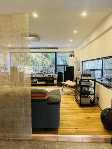 最打动人的是一楼公共区域:临窗的木质书吧摆满经典书籍,茶室禅意十足,茶台是一张超大石桌面,上面紫砂壶与绿植布置得错落有致,老板还亲自泡茶与客人品茗畅谈,傍边视听室的留声机流淌着黑胶乐章。每一处角落、每一件器物,都透着主人深厚的文化底蕴与对生活的感悟。这里不仅是旅途驿站,更像是主人精心打造的精神桃源。短暂两日,恍若住进了某段慢时光里,值得反复回味。