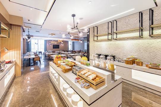 酒店环境舒适,停车位多,还有机器人送物,早餐中西餐都有都能满足客人需求,食材新鲜,深夜粥道面包小菜种类繁多,暖心点赞。