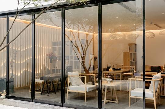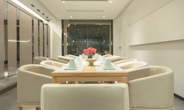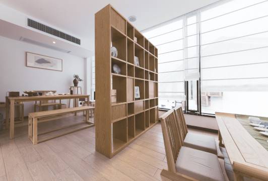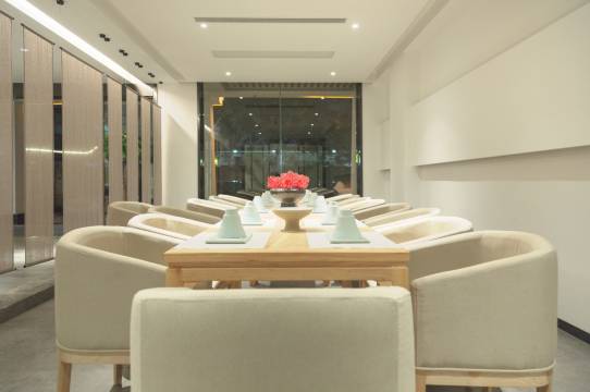禅意独具的中庭园林、群山环抱之中的全景天窗茶室、梓木素绢的拉门、景德镇定制白瓷茶具、日本好设计大奖的汀壶,匠心独运将禅的意境融入每个细节。