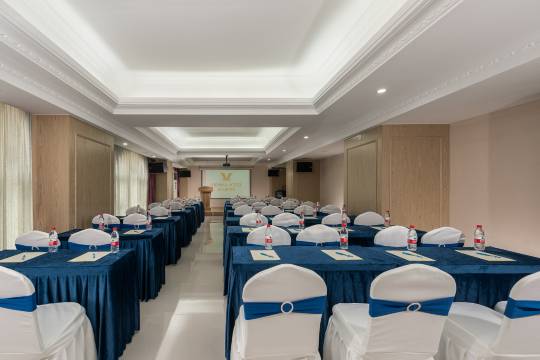 酒店选用新一代5.0版本,采用欧陆风格设计,风格雅致,温馨,房间内精心选择“愉梦之床”,助您一夜好眠!拥有婚庆家庭房和商务套房等多种类型客房,内设品类丰富的商务早餐、洗衣房、地下停车场,宴会室等配套设施。酒店坐落于普宁市流沙镇环城南路,毗邻普宁高铁站和深汕高速路口仅5分钟车程,距离潮汕机场仅需50分钟车程。交通便利,周边经典潮汕风味餐馆及夜宵众多,距离本市中药材市场、普宁广场、美佳乐购物中心、太阳城进出口购物中心、商品城步行街、中华新城、服装城批发市场不到3公里,实为商务洽淡,旅游观光,休闲娱乐的上佳之选。我们秉承“绅士般的服务,淑女般的亲切”的经营理念,以舒适豪华的装修设计,愉梦之床,健康美食,高性价比的经营特色的准高端酒店,在同类酒店中脱颖而出,其博览消费的独到理念,真正让您花少钱,又有档次,完全超出你的期望!