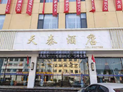 本酒店于2019年正式开业,本店经营面积3000余平,住宿区域为二,三,四,五层,本酒店内设有足道部,含可容纳110人的独立会议室,配有餐厅,用户到店可享受免费早餐,后院免费停车场,全楼Wifl覆盖,智能网络电视,24小时热水,恒温中央空调,共享充电宝, 一楼商务洽谈区,以安心舒适,干净整洁等特点作为本店经营理念,天泰酒店董事长携所有员工盛情欢迎您的下榻,还望各位贵宾大力支持并提出您宝贵的建议 。