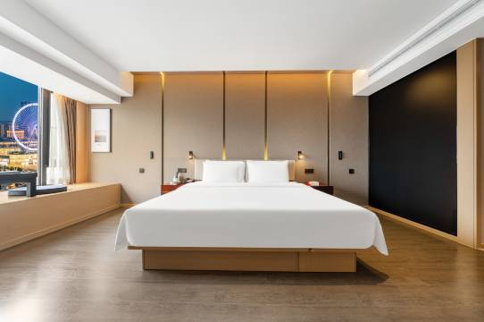 酒店位置很好,去景区和商圈都很方便。前台办理入住特别高效,还贴心地提前打电话询问要求,给升级了湖景的房型。房间比图片里看着更宽敞,装修是简约大气的风格,一进门就觉得很干净,床品柔软得让人一夜好眠,浴室干湿分离,热水来得又快又足。酒店人员服务态度很好👍,细节直接满。