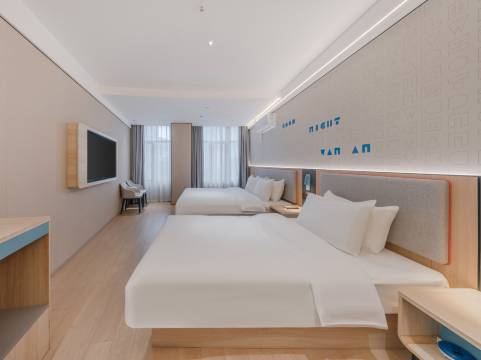酒店比较新,干净整洁,干湿分离,家庭房间大小合适,还赠送了孩子早餐券,环境安静,早餐自助,也有现煮面条馄饨