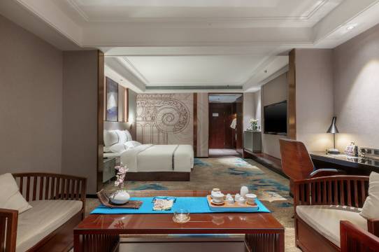 酒店整体环境特别好,装修大气雅致,公共区域干净整洁,走进来就觉得很舒服。房间里更是没话说,设施设备齐全,该有的都有,而且维护得很好,完全没有老旧感。卫生更是没得挑,床单被罩干干净净,连角落都收拾得很到位,尤其是毛巾都是独立封装的,一看就很放心。