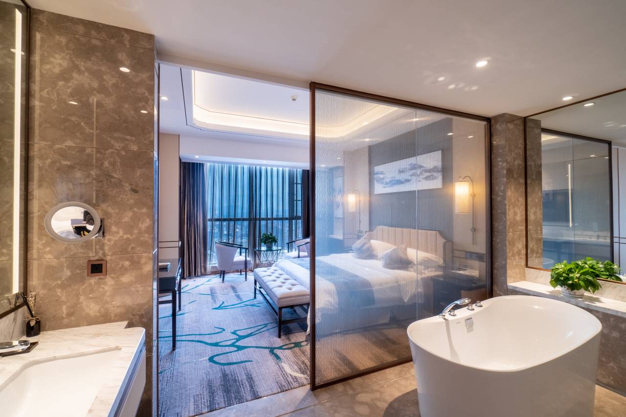 酒店设计概念高端豪华,以时间和空间为载体,演绎现代特色酒店之精华,完善周到的对客热情服务,是您商务、旅游、休闲,购物的理想下榻之地,集玉荟、购物、饮食、健身休闲为一体,酒店专设送机场、高铁服务(具体收费以酒店价格为准)房内设施齐全,无线网络全部覆盖,全新打造免费电影新体验视觉效果和触觉的舒爽体验,可满足商务客人和旅游客人的种种需求,房间配置四季如春的空调,为每一位旅客提供优良的服务品质。