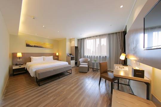 前台工作人员态度特别亲切,办理入住时动作麻利,还主动提醒附近的小众美食店,连怎么坐车都讲得清清楚楚;早上路过走廊,保洁阿姨会笑着问好,收拾房间时轻手轻脚,补充洗漱用品也很及时;离店那天赶时间,前台还帮忙快速办理退房,贴心问要不要装瓶矿泉水路上喝,这些小细节都透着温暖。
