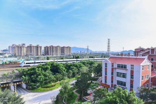 在一个村子里,离高铁站很近;装修挺新的,楼下就是士多店和早餐店,比较方便。服务也挺好的,客房打扫很及时。