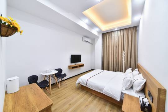 房间装修风格很好,卫生间是黑白色系,房间有接近木头色的原色家具,都是悬空打造的家具,方便拖地,浅金色窗帘,纯白色且光滑的墙壁,整体装修风格,非常简约大方。不好的就是,服务态度不好,我通过携程提出申请给我孩子加一床被子,店家没有给加,结果小孩子睡觉背部漏风,着凉感冒了。还有房间内的纸杯子上,明显写了有免费从酒店至火车站这段路是可以免费接送,后来我通过携程去确认,也没有享受到这个服务。当时,携程服务还可以,给了一些金额补偿,我自己第二天加了几元钱,打的到火车站。总之,酒店的硬件是真心好,软件服务方面,很差。尤其是,他们自己房间内纸杯上,都印着“免费接送”的字样,而实际上却没有相关服务,真让人感到被戏弄了一番,很不好。要么就不要写出来,要么写出来了,就要做到,不要给客户画大饼,光画着好看吗?住个酒店,本来房间挺好的,结果被服务丢分,我儿子还因为没有多一床被子,冷的感冒了,咳!