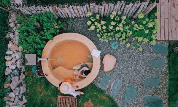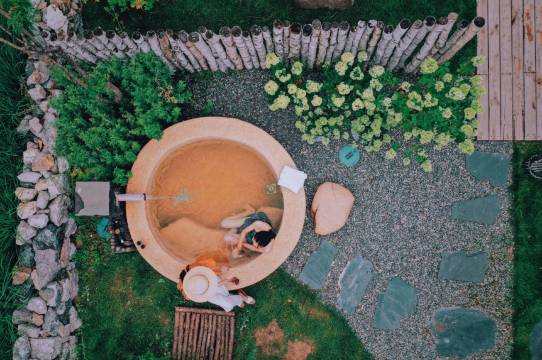 我们定的是单卧私汤别墅,但小姐姐心善给我升房型了!私汤很舒服,提前一小时在微信跟小姐姐说一下,就有人来帮忙清洗,户外私汤太舒服啦!