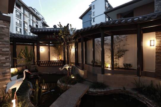是一家在小区里的带院子的独栋别墅,环境非常好,院里还有一个小小的荷塘,安静整洁。