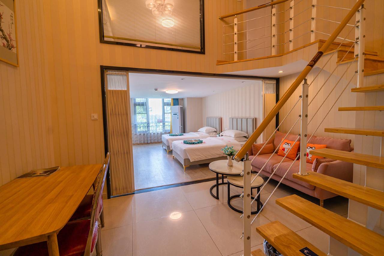 这个酒店挺好的,住的loft上下层,下面客厅很大,上面两个房间,两张床,性价比很高,而且早餐帮我们送上门,还有免费停车,走路到四季花海也很近10分钟,附近吃的也有,餐厅,便利店,最近樱花,郁金香都开了,赶紧来看看吧。