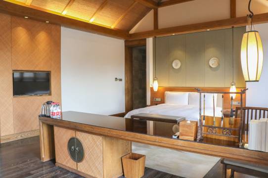 酒店书院酒店以儒家文化为特色,装饰中式房间,多一分浮华,少一分则简陋,拥有客房,独栋式设计,配有独立庭院,超大的空间。客房内浴室都是干湿分离设计,有单独的空调控制设备等。【山居园景房】,为简约中式装潢风格的标准客房,注重细节,典雅、温馨;丰富的文化、休闲活动,精致美味的餐饮,为您提供舒适和惬意的入住体验。