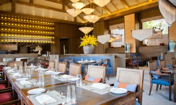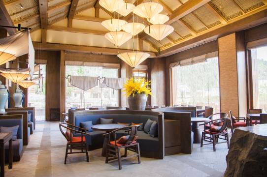 中餐厅以孔府菜为主,雅俗兼备,风味独特,是中国文化必不可少的一部分;西餐厅开放式厨房可零距离欣赏大厨技艺。大堂吧有咖啡、小食、美点、美景。独栋式酒吧有正宗的中西小吃和特色鸡尾酒。