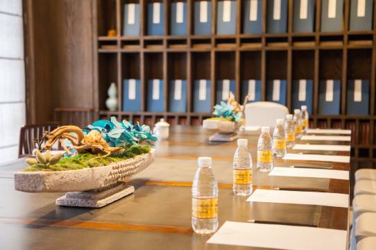 酒店格局精妙,依山而筑,依山之势步步升高,翠竹落英文艺雅致,潭水清澈碧波荡漾,鱼戏绿波温馨和谐。夜晚降临,明月松间照,灯光如星辰点缀,好一番静谧世界。酒店内还可体验有氧徒步、抄读论语、传统文化体验课、书法课、香牌制作、游泳趴等活动。