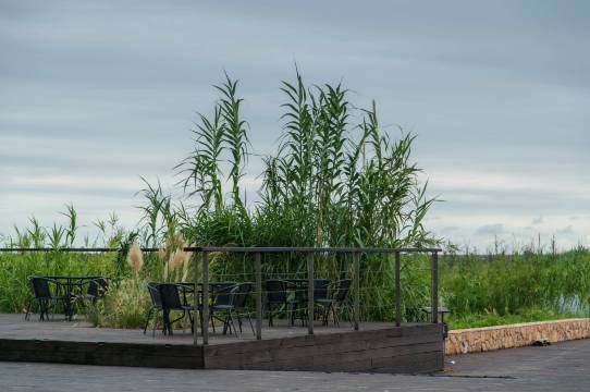初来乍到,就有一种被荒野自然包围了的感觉。造型各异的小木屋被齐肩的茅草包裹,宛如生于其中。这里有着上百种不知名的野草,按它们各自原本的形态恣意生长着,显得有些狂野,仿佛它们才是这里真正的主人。