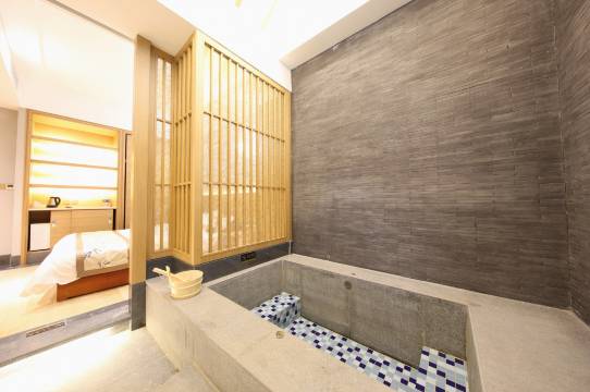 院内还有个私汤泡池,泡泡澡很是舒服。院子里还可以自备食物烧烤,一家人可以在此享受快乐时光。