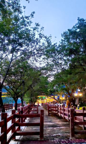 环境好,门口就是有个躺平公园,还有皮划艇适合带小孩来玩,刚好来时周日🈶免费歌唱演出看(听老板说周五到周日没下雨都会有演出),几年前到过老街附近(现在改动很大,漂亮多了,可以改名叫新街啦,哈哈),