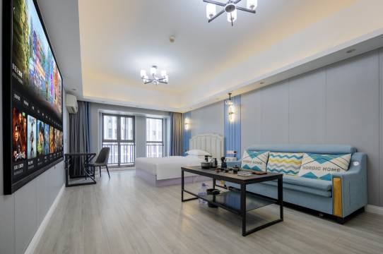 超惊喜的一次住宿体验!这家影院酒店简直是影迷的天堂!房间空间超级大,布置超有氛围感,巨幕投影画质清晰,音响效果堪比专业影院,躺在床上就能享受私人观影时光,太惬意了!酒店服务更是无可挑剔,从前台接待到客房服务都热情周到。房间设施都是五星级标准,床品柔软舒适,卫浴用品也很高级。位置也很方便,楼下就是万达广场,周边美食多,出行便捷。强烈推荐给喜欢电影和高品质住宿的朋友,下次还会再来!