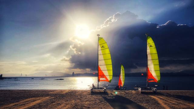 晚上和朋友在船屋外坐一坐,听着海浪声,伴着海风吹就很适合度假放松