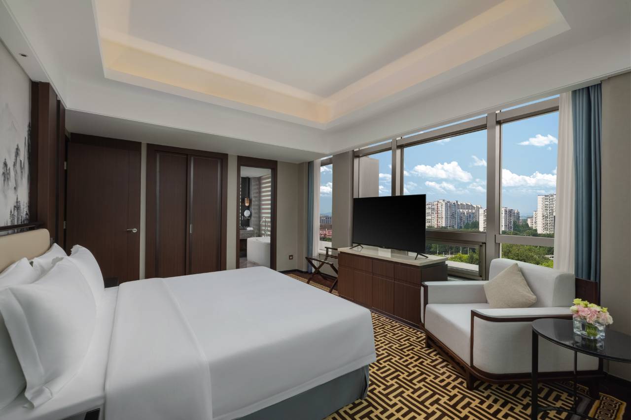 酒店位置交通便利,装修格局新颖,房间宽敞明亮,对外有落地大窗,能看到旁边的大公园,感谢前台小于给我推荐的房型,我非常满意,卫生间干净整洁,房间内配备的设施很齐全,人员服务专业热情,值得推荐!👍