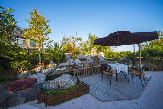 下了高速,行驶在乡间小道,穿过绿油油的稻田和成片的桔子园,然后就到达此次的目的地了。当然事先老板已经加了微信发了具体定位,所以还是挺好找的。别墅靠河边,视线一览无余田园风,功能区很齐全,有景观鱼池,茶室,棋牌室和厨房还有Ktv,意外的是还有咖啡机可以做咖啡。老板推荐我们去了当地的菜场,买了很多小海鲜,回来用了厨房做了一顿美味的晚餐,坐在靠河边的平台,晚风习习,好不惬意。客房干净舒适,自动马桶,床品也不错,两个主卧的房间视线风景特别好。老板也很贴心,会时不时来问还需要什么帮助。家人朋友对这次的出行都很满意,打算冬天的时候再来,因为老板家有壁炉可以烤火