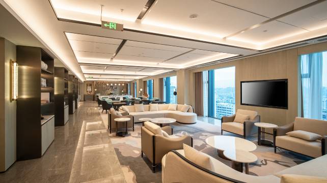 酒店设施齐全舒适,房间空间较大,落地窗景色怡人,水流特别大洗澡舒服,比预期更好,值得入住。