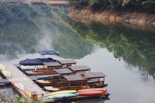 这里垂钓,或登水上自行车,乘木舟,或划皮筏艇,观山戏水,体验亲水乐趣;还单独为儿童贴心设计的手摇船,软陶和插花等亲子活动为家庭出行提供便利;体验制作湖笔、徽墨,了解传统文化让度假生活更有意义。