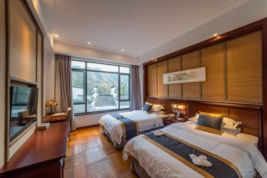 酒店服务非常好,早餐也不错。房间宽敞明亮,非常安静,四面都是美丽的山景,酒店门口就是皖南最美公路之一。照片都是我拍的实景。