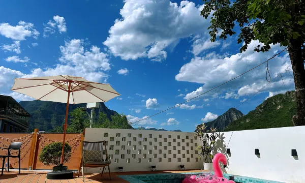经常出去玩,住宿方面也踩过不少雷,所以我们是去了之后现场找了很多家,最后才选定的这家,新中式的装修我很喜欢,房间内干干净净,没有异味,洗漱用品一应俱全,听老板娘说床品是按照星级酒店配置的,确实不错,院子里今年新建的泳池,拍照打卡确实很美,如果您也想来十渡玩,闭着眼睛选这家民宿一定没错,真的是我看了很多家之后筛选出来的,极力推荐!