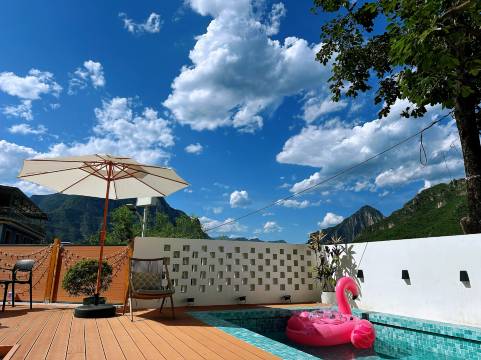 因为带孩子出来转转,所以选择了这家带泳池的民宿,拍照很漂亮,老板娘很热情,装修在这附近算得上很高端的民宿了,之前住过山里的房子很潮湿有异味,但是她家房间宽敞明亮,房间收拾的干净卫生,床品也是很高端舒适的,带家人出来放松就应该找这样的地方住,在这里整个人都很舒心,安静,这次是来对了,以后就她家了