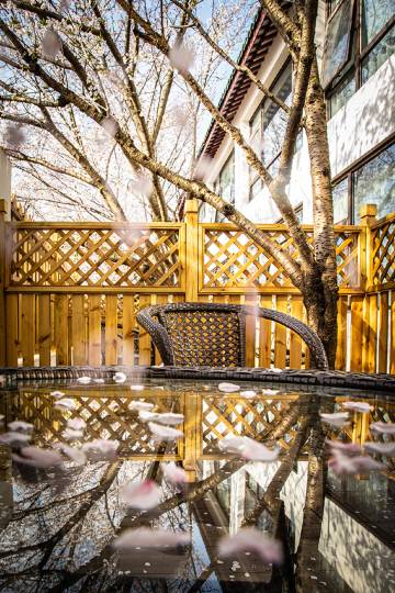 下周一周应该是最好看的时候。如果你的时间充裕,住在樱花山庄可以逛两天的日樱和两晚的夜樱。在早上和晚上错峰出行,拍出美美的樱花雨……