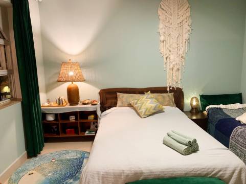 大理理想的下午艺术客栈,就在必逛的文艺艺术聚集的人民路中段,转进去就到达。我们就在独具云南特色的一百多年历史的天主教堂对面,闹中取静。房子是服装设计师Cecilia设计的,有个小后院。这个三层的白色建筑拥有欧式圆窗设计,墨绿、浅金色、白色的北欧风,软装是我最喜欢的东南亚,家里许多陈列品都来自巴厘岛!套房主卧的大窗窗景是天主教堂的屋顶,侧卧的大窗窗景是苍山,屋顶可以看繁星漫天以及洱海。卧室物品全部竹纤维、乳胶垫、手工精油用品。家里都是隔音窗户,对于睡眠要求很高的朋友可以安心。作为一个旅行爱好者,走过世界各处,大理古城是独爱的安家处之一,希望每一个位来的朋友,都能enjoy这里的一切!