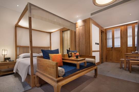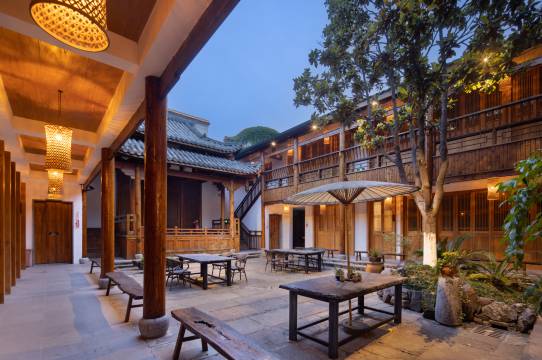 钟祥明朝那些事儿客栈,以明朝民间南来北往的侠旅文化为基调,前院回廊水榭,中庭古屏宴几,后院戏台楼阁,移步换景别具一格;民宿延用明朝客栈天字、地字、人字命名方式,全房标配明式家具,大气而不失优雅,情景式管家服务,亲切而有温度。再现“同福客栈”!谈笑间品儿女情长、侠骨柔情,往来中感人生如戏、笑傲江湖。