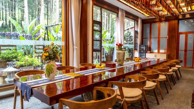 老板很大气,在一二三楼都设计了很大的公共活动区域,三楼清新的早餐长桌,二楼大大的茶台、咖啡座,一楼的游泳池、透明船……让人充分享受高品位的自在放松。