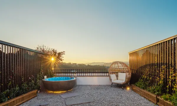 * **露台私汤,极致享受:** **最最最打动我的就是房间自带的露台私汤!** 私密性满分,想泡就泡,完全不用顾虑他人。温泉水温刚刚好,水质感觉也很舒服。晚上躺在温暖的泉水里,抬头看看腾冲的星空,听听虫鸣鸟叫,白天的疲惫一扫而空,这种体验感是公共大池子完全无法比拟的!露台的设计也很有心,泡汤时既能享受自然,又保证了隐私。